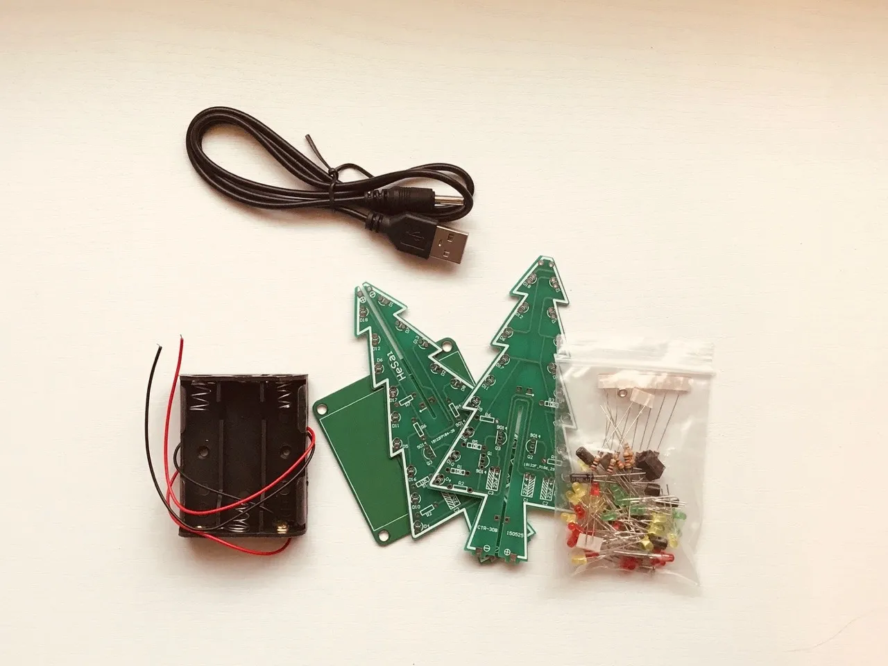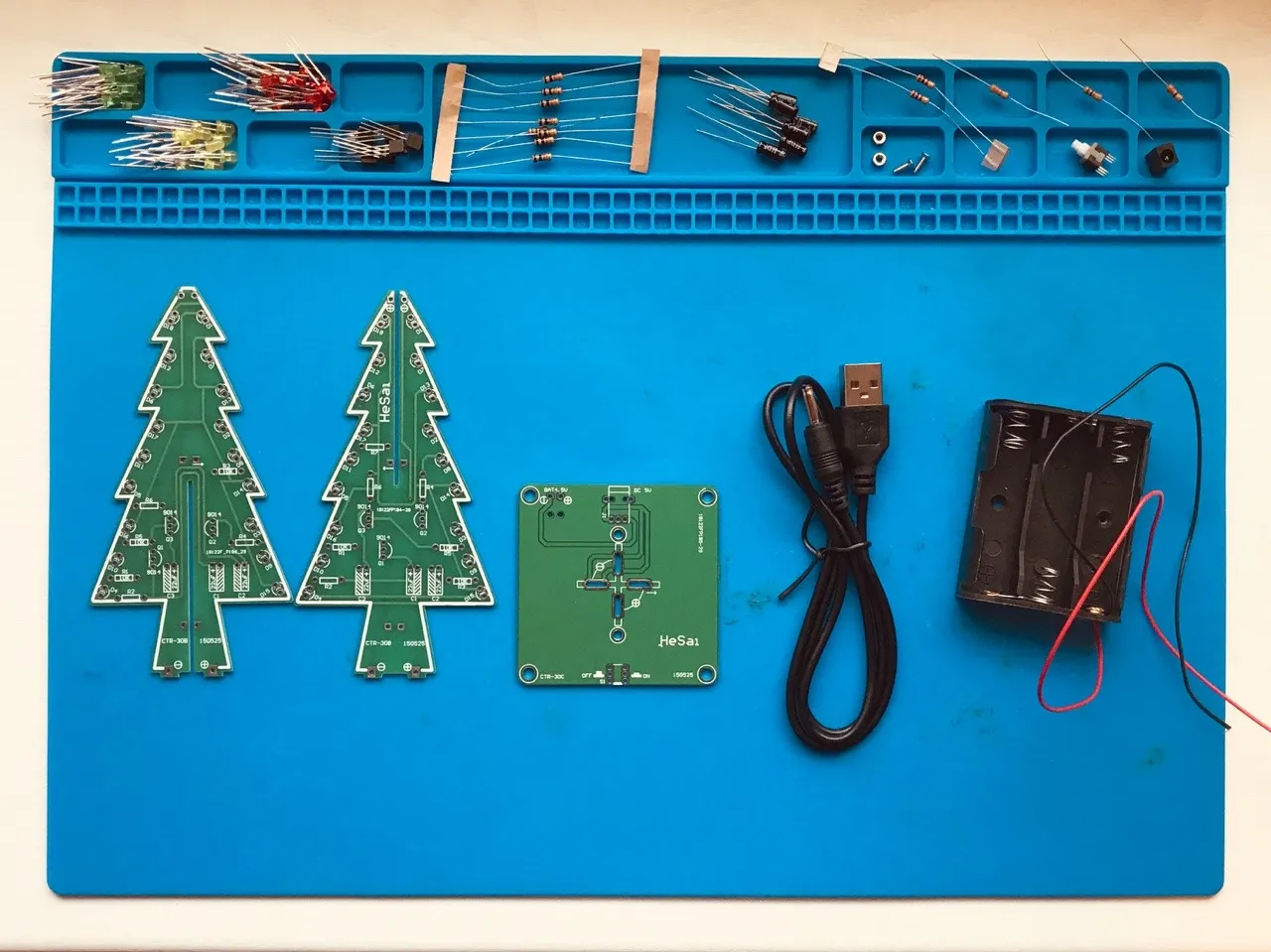Bet instrukcijas nav! Uz platēm nomarķētas tikai pāris no visu rezistoru vērībām. Nu labi, pasekoju celiņiem lai saprastu kā ledi slēdzas. Tā kā komplektā ir tranīši un kondensatori, tad ir cerība ka arī mirgos!
